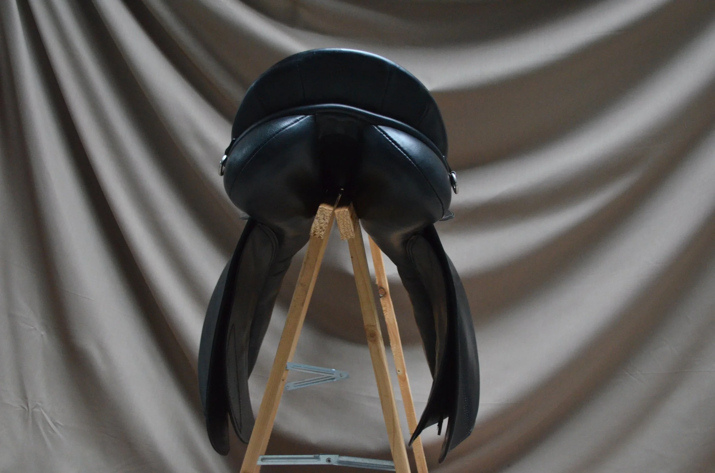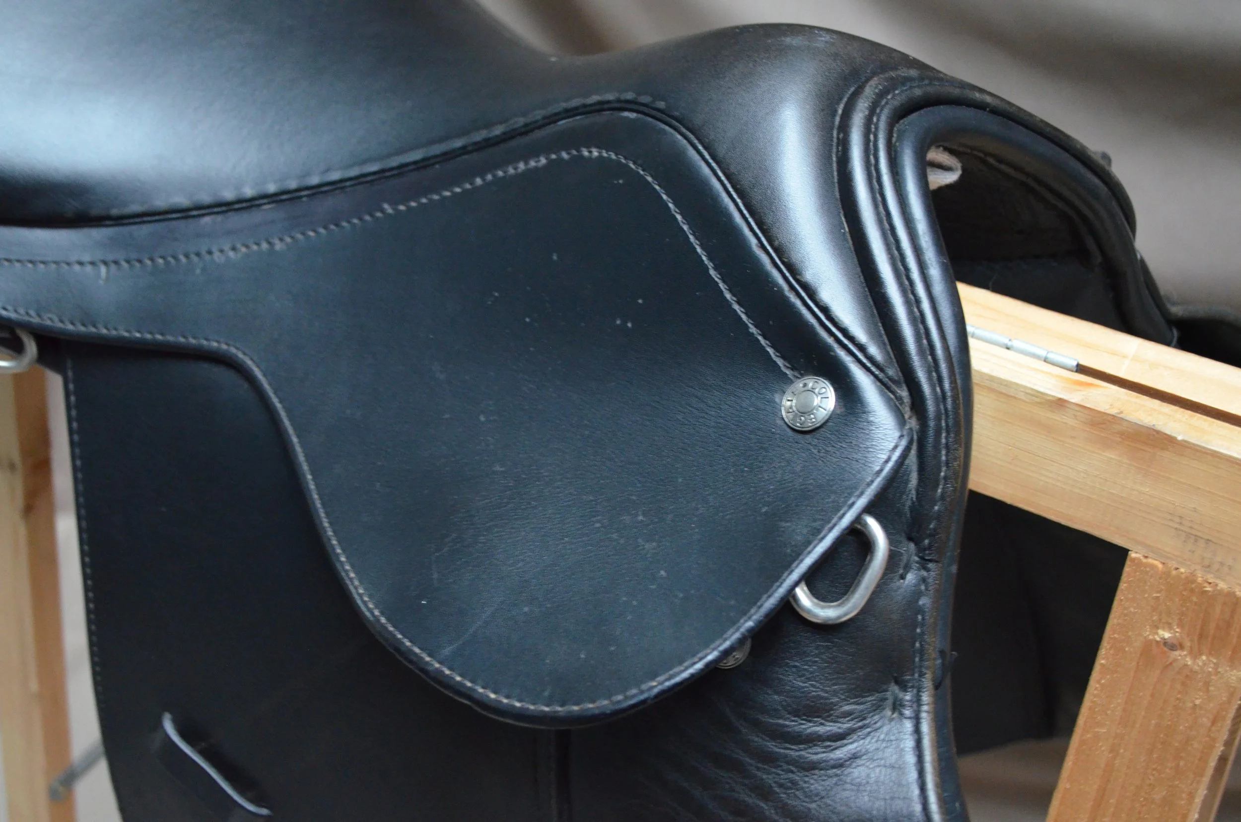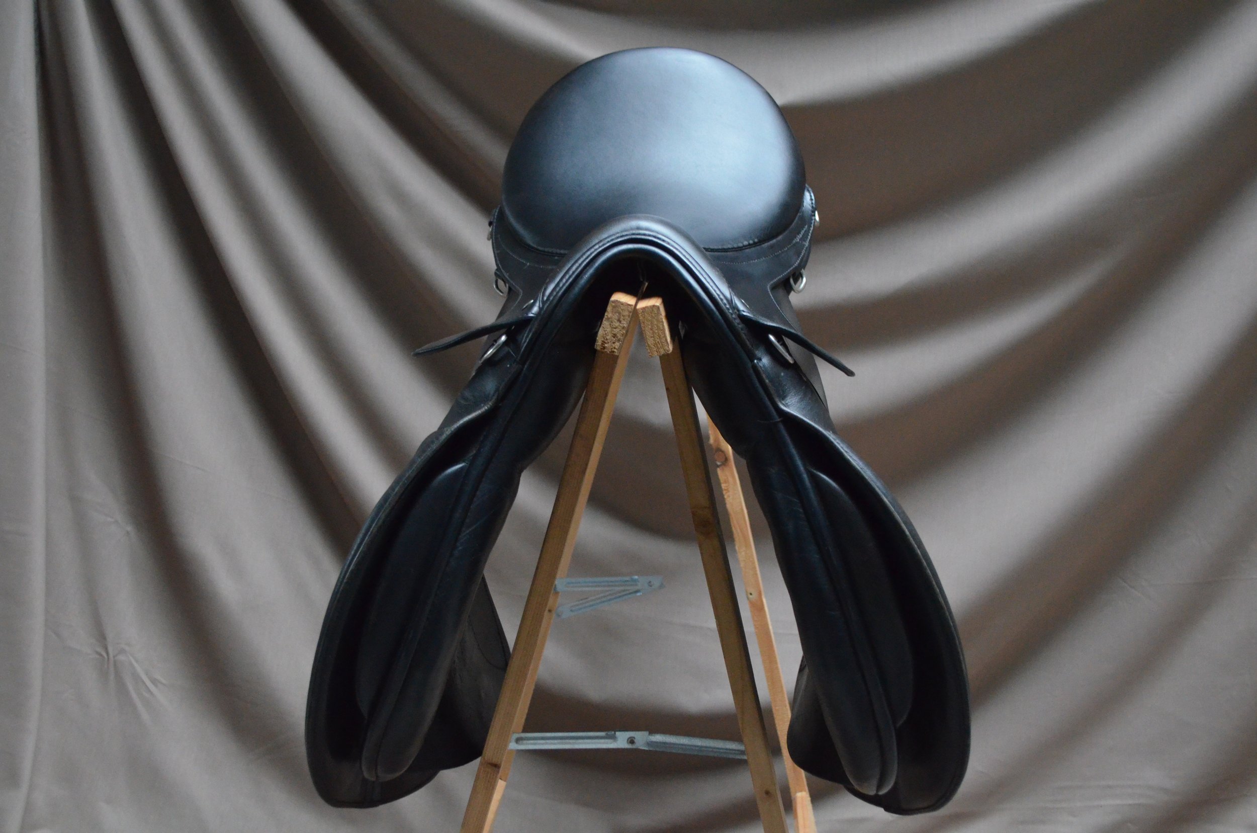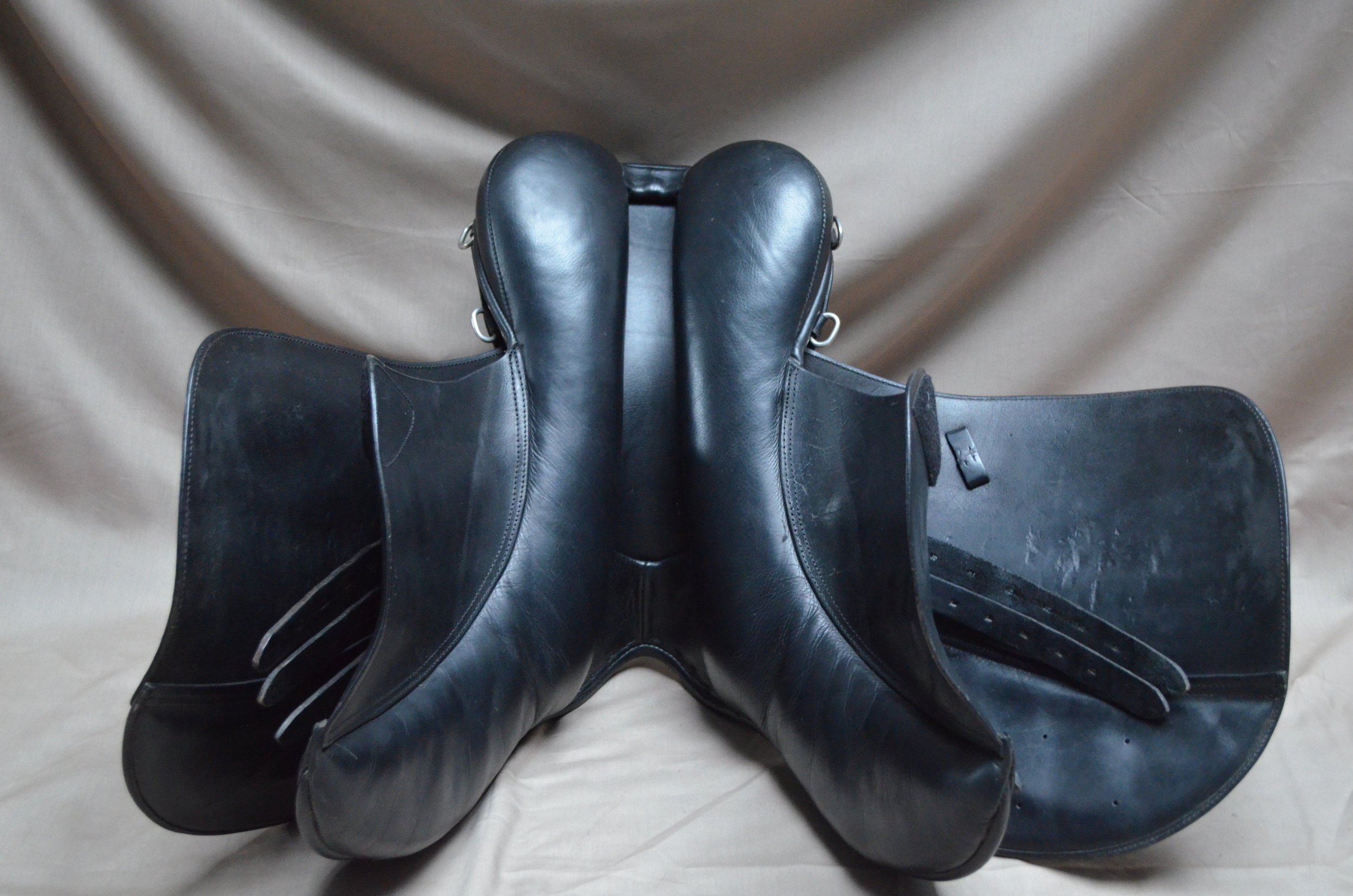 Siodło w dobrym stanie. Posiada normalne ślady użytkowania, przetarcia na tybince oraz drobne, estetyczne uszkodzenia skóry.